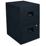 Protect important documents and other data safe in the event of a fire with this two-drawer insulated vertical file cabinet. Rigorously tested following construction, the file cabinet resists fire temperatures up to 1700 degrees F to protect CDs, DVDs, USB drives/memory sticks, and papers for one hour. The file cabinet offers further security with a tubular key lock on the lower drawer to keep contents safe from flames, or from prying eyes. Equipped with rails for legal files, the file cabinet also accommodates A4 and letter files in its 2.38 cubic feet of storage space. The interior of each drawer measures 12 inches wide by 18 inches deep by 9-1/2 inches high. The drawers slide along metal glides to extend fully. To keep the file cabinet from tipping over due the imbalance of an extended drawer, the cabinet's body is weighted. The file cabinet measures 17-1/4 inches wide by 23-1/4 inches deep by 28 inches high and it weighs 175 pounds upon shipping.